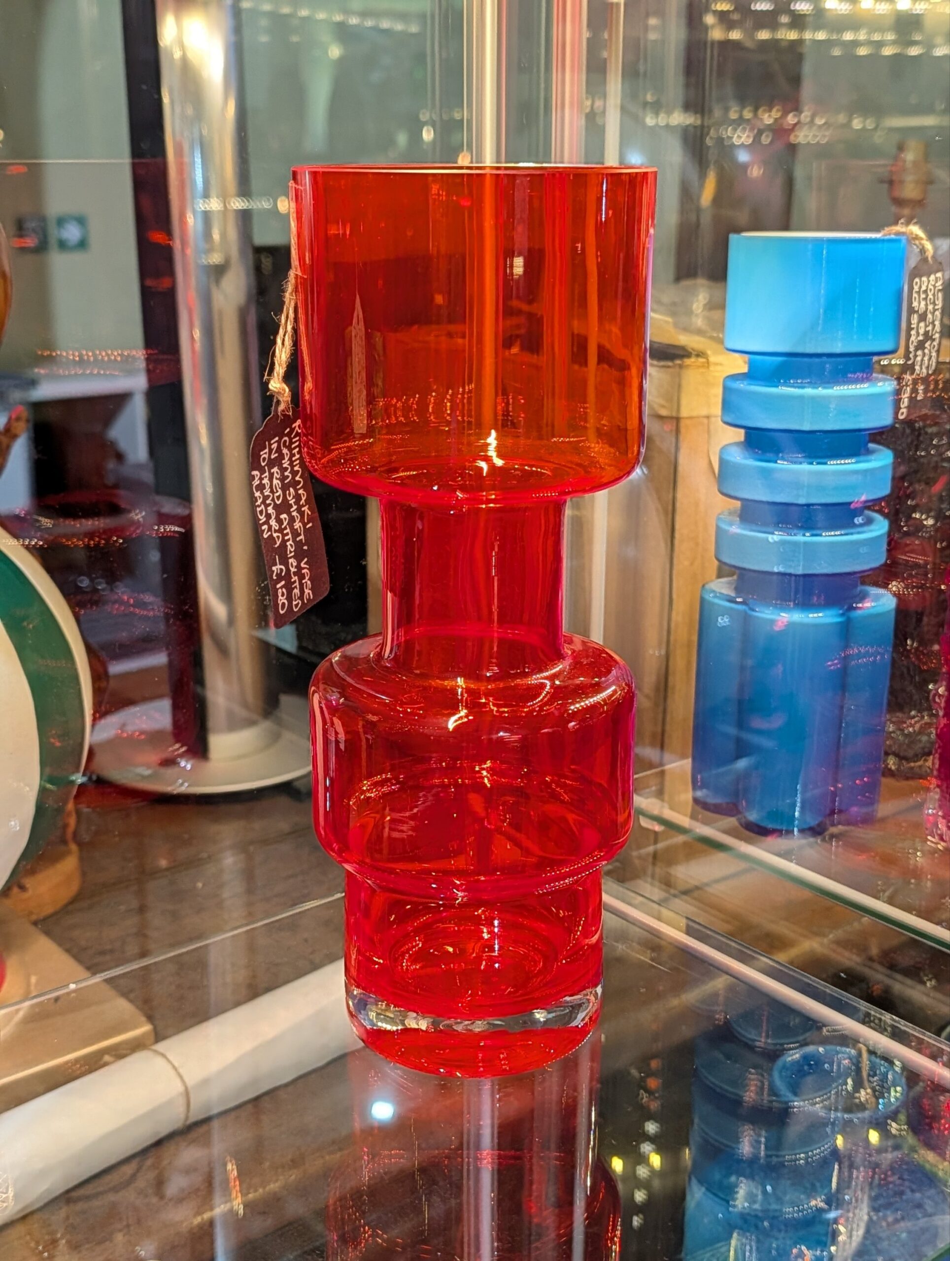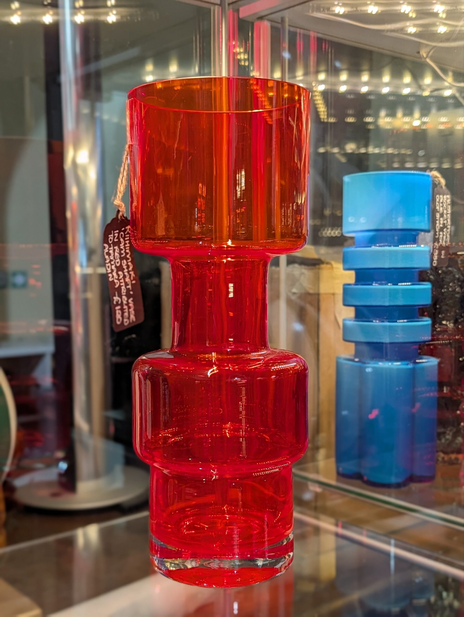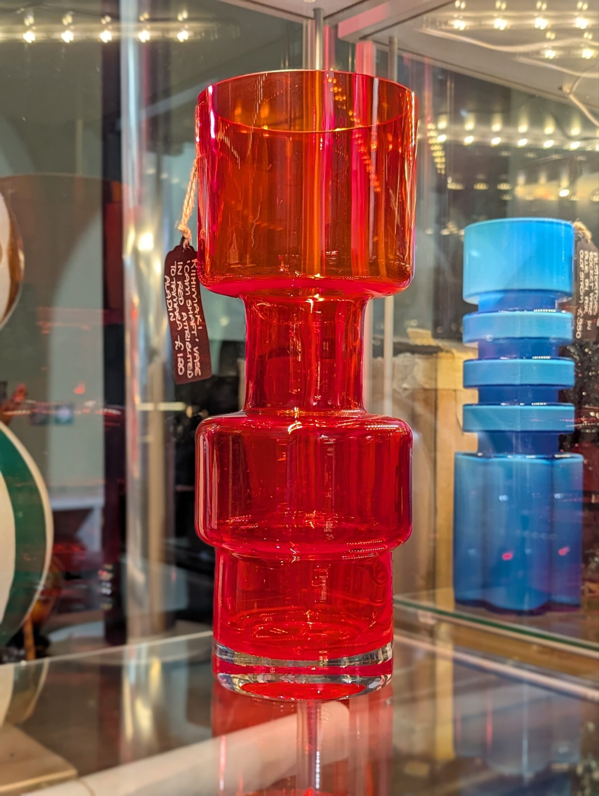 The clean, modernist silhouette is characteristic of Riihimäki’s mid-century production and aligns closely with forms designed by Tamara Aladin during her prolific period with the factory.